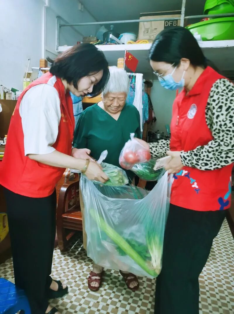 志愿者为高龄独居老人送新鲜蔬菜