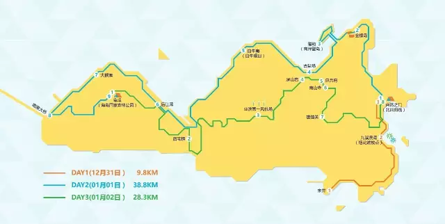 途经点:宋井、金银岛、猎屿、南澳大桥、亚洲第一风机场、总兵府、南山寺、雄镇关、自然之门等。