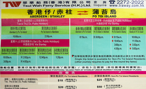 —赤柱卜公码头(去程已收往返船票,注意保留返程船票)